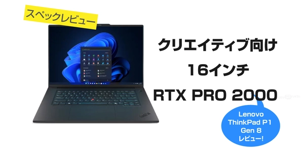 ThinkPad P1 Gen 8は、16型のモバイルワークステーションで、Intel Core Ultraシリーズ2のプロセッサーや、NVIDIA RTX PRO Blackwell Laptop GPUを搭載できる高性能モデルです。